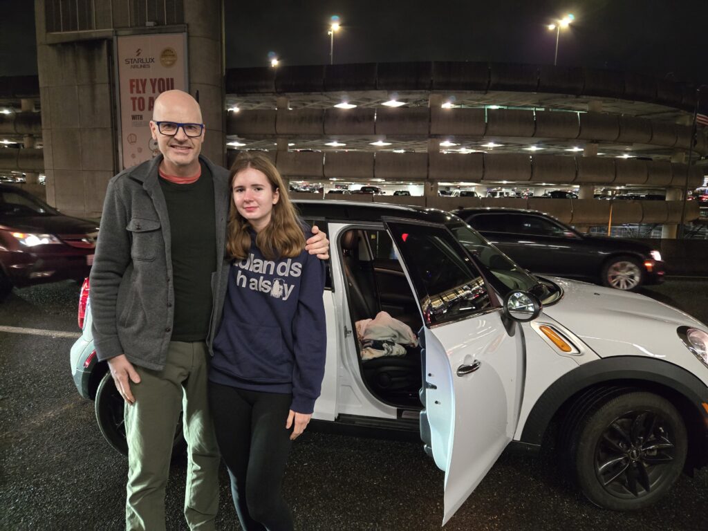 Two days before we flew to Seattle for Thanksgiving to celebrate with close friends, Jennifer found a 2012 Mini Countryman for sale in Lynwood — only 40,000 miles, a great price, and just right for Penelope, who had her learner permit but not yet her license. On top of that, Penelope still needed the driving hours required to test — seven daytime and ten nighttime, not yet completed.